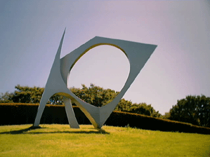 県立美術館所蔵 無断転載厳禁 まず、彫刻プロムナードの最初に僕達を向かえるのは丘の斜面に鋭く構えているアークU。 「アーク」とは「弓型の曲線」と言う意味。 ニューヨークで活躍していたロザティが手がけたこの作品は、3年に及んで制作され、1986年に清水港から上陸した。 その流れるようなスマートな形を見上げれば、背景となる青空とは全くもって異質なものであるが、その異質さこそがこの作品の醸し出す芸術なのではないだろうか。