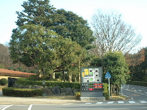 美術館・図書館の開館・閉館情報や、駐車場の満・空情報を案内する看板がある。